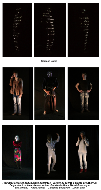 Vidéos lecture du poème à propos de Sahar Gul « I blame, my name is woman» (Je suis une femme est-ce un crime ?)texte exprimant le calvaire enduré par Sahar Gul et évoquant le traumatisme des femmes face